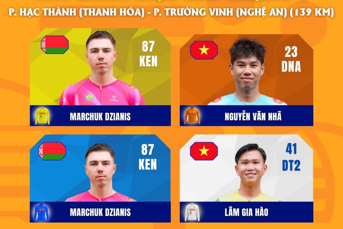 • Áo vàng (Tổng sắp cá nhân) và Áo xanh (Vua nước rút): Marchuk Dzianis (Kenda Đồng Nai)
