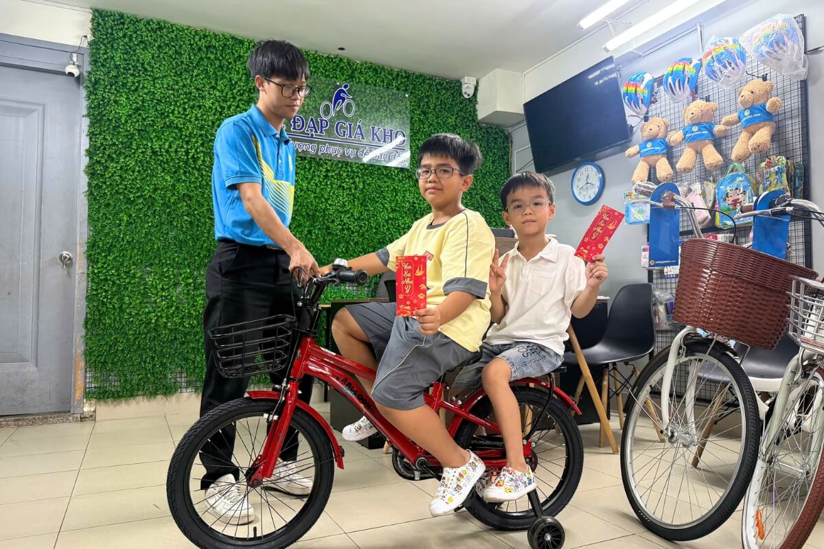 Dùng tiền lì xì mua xe đạp cho con chính là khoản đầu tư đáng giá cho sức khỏe và sự phát triển lành mạnh của trẻ. Hãy đến ngay cửa hàng Xe Đạp Giá Kho để mua xe chính hãng, giá ưu đãi, với đa dạng dòng xe phù hợp theo từng ngân sách, nhu cầu sử dụng. Hoặc có thể gọi hotline 028 9996 5775 để được tư vấn nhanh chóng và chi tiết ngay nhé.