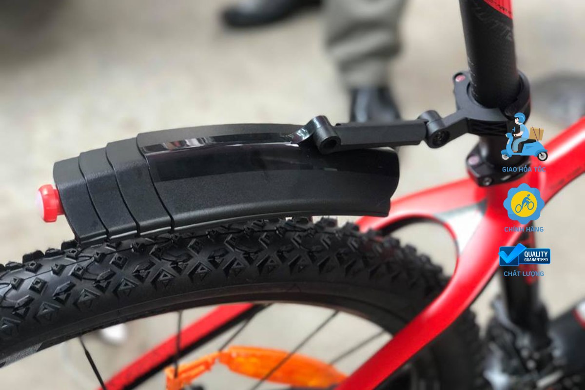 Ánh sáng đỏ giúp người đi sau dễ nhận diện, giảm nguy cơ va chạm khi đạp xe buổi tối hoặc trong điều kiện sương mù, thiếu sáng. Với thiết kế chắn bùn kiêm đèn hậu, bạn vừa có sự gọn nhẹ, vừa bảo đảm an toàn tối đa.