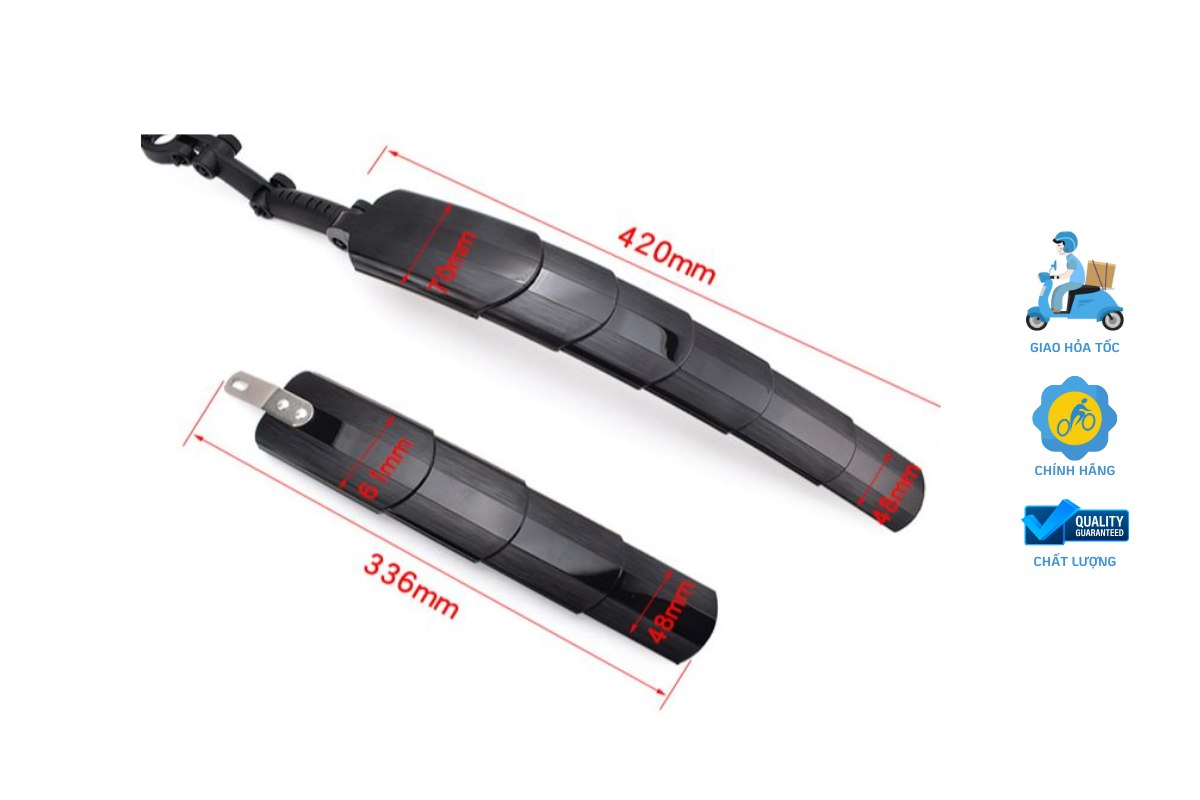 Sản phẩm có trọng lượng chỉ khoảng 120 gram, rất nhẹ nhưng vẫn chắc chắn. Dè trước có thể lắp ở ống phuộc hoặc lỗ có sẵn trên phuộc, trong khi dè sau lắp ở cọc yên hoặc khung sườn xe.