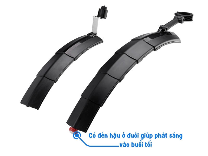 Điểm cộng nổi bật của dòng chắn bùn rút gọn này là đèn hậu tích hợp, vừa đảm nhiệm chức năng cảnh báo, vừa tăng độ an toàn khi đi trong đêm.