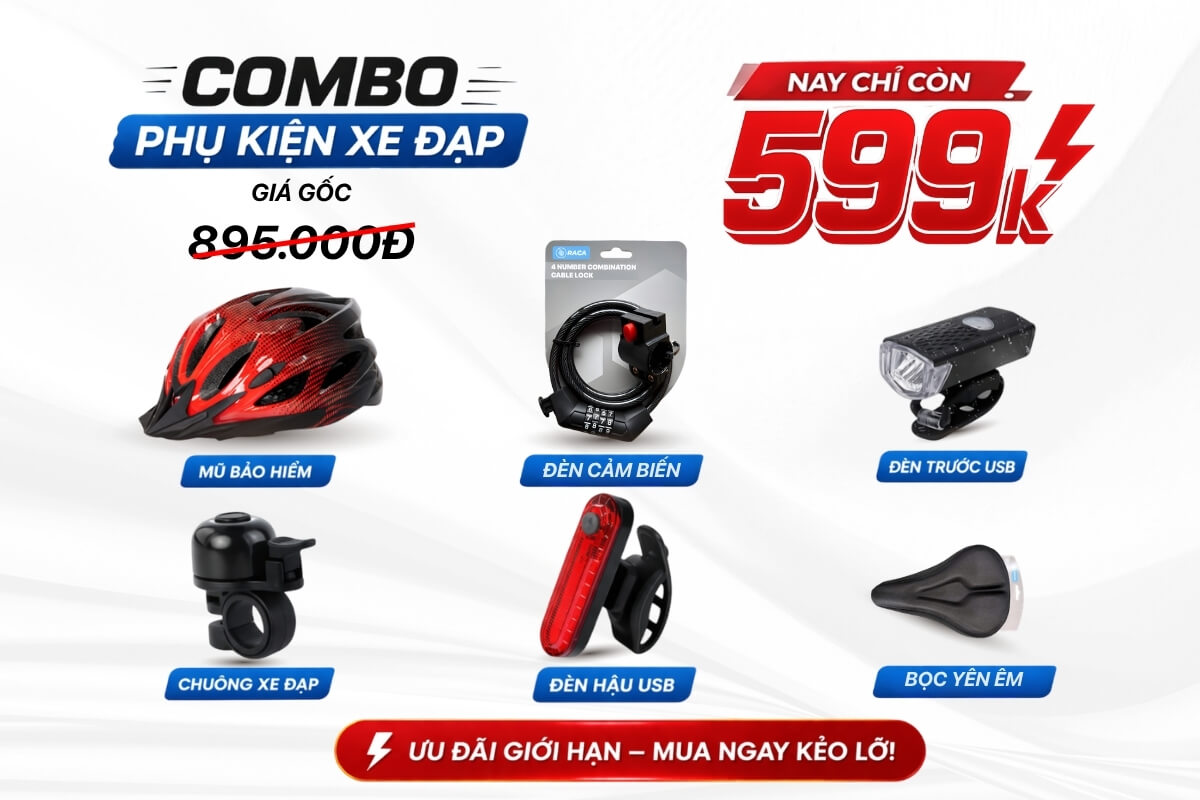 COMBO XE ĐẠP 6 PHỤ KIỆN CHỈ 599K