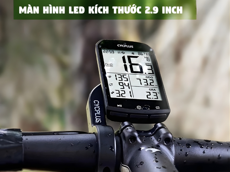 Đồng hồ tốc độ không dây Cyplus M1 được trang bị màn hình LED kích thước 2.9 inch, màn hình lớn nhất trong tầm giá.