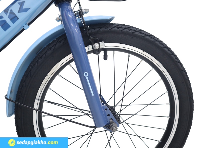 Kích thước bánh xe 18 inch phù hợp cho các bé trong độ tuổi từ 6 đến 9 tuổi, chiều cao trung bình khoảng 1m20 đến 1m30. Bánh làm từ cao su, gai nhỏ, giúp tăng độ bám đường tốt, hạn chế trơn trượt khi bé đạp xe trên mặt đường ẩm ướt.
