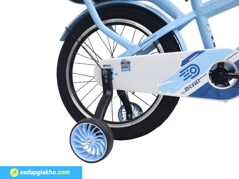 Xe Jazz Bear A-2307 18 inch có sẵn bánh phụ, hỗ trợ giữ thăng bằng cho các bé mới tập đạp xe. Yên xe bọc da mềm và có thể điều chỉnh linh hoạt độ cao thấp theo thể trạng của trẻ.