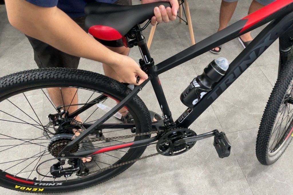 Khung sườn xe Trinx GT27.5 được làm từ hợp kim nhôm cao cấp, và mức giá dưới 5 triệu là một điểm cộng lớn đối với thu nhập trung bình ở Việt Nam. So với khung thép truyền thống, khung nhôm nhẹ hơn đáng kể, giúp xe có tổng trọng lượng nhẹ, dễ dàng di chuyển, nâng lên khi leo cầu thang, gửi xe, hoặc khi gặp địa hình dốc.