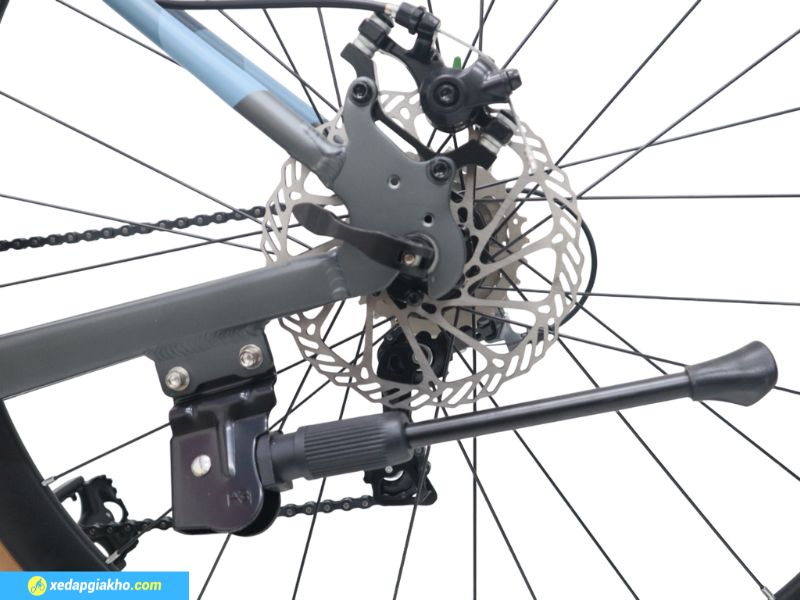 - Gạt đĩa trước có 2 tầng: giúp bạn thay đổi tốc độ phù hợp khi đạp xe, kết cấu chắc chắn truyền lực đều