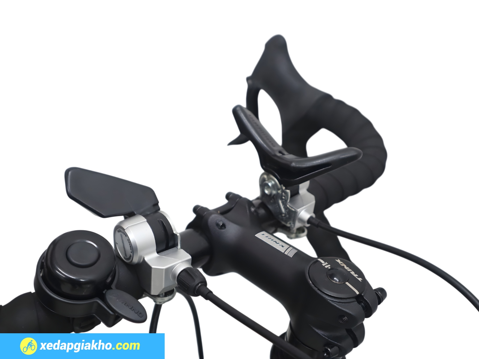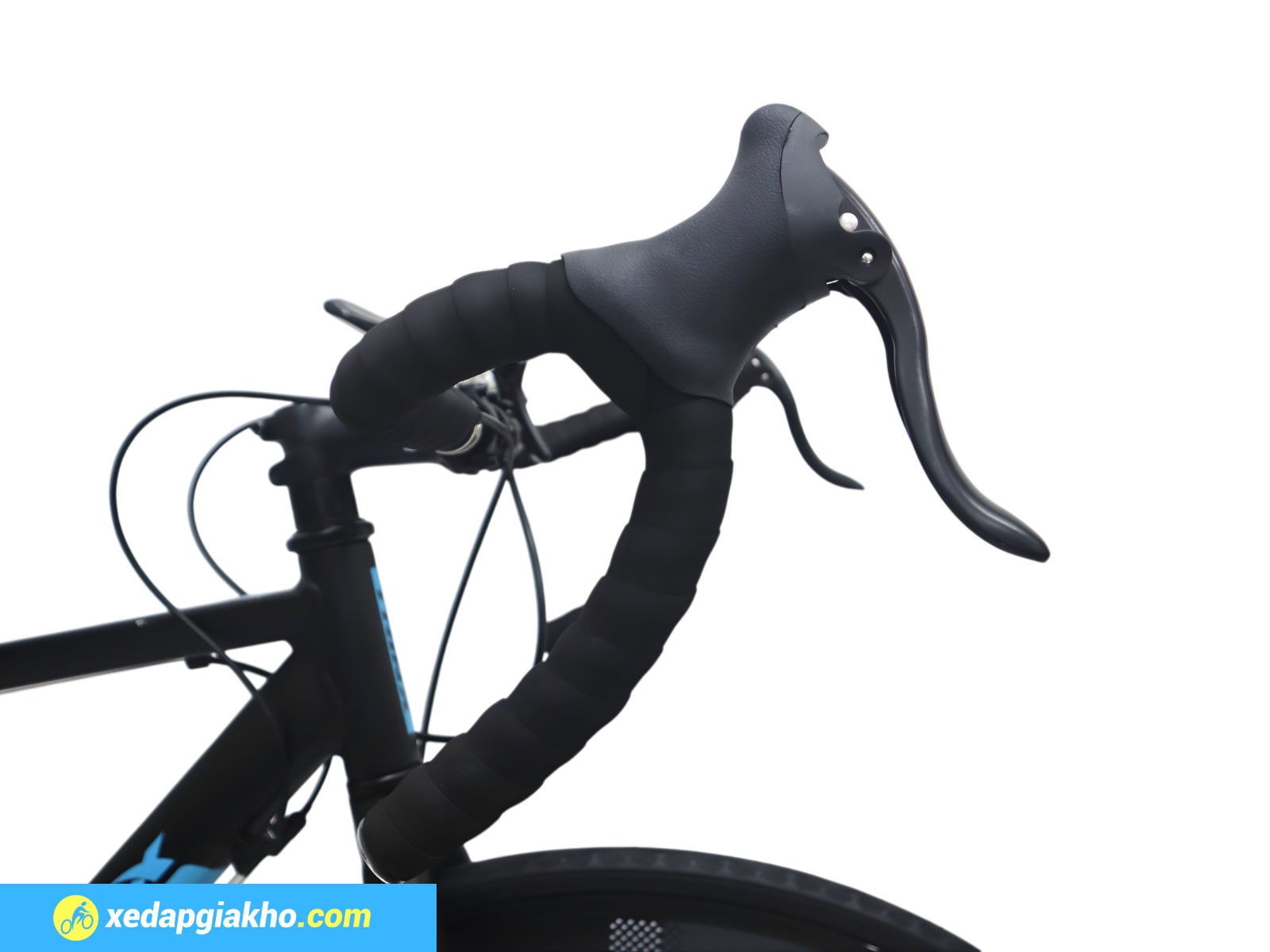 Ghi đông xe đua dạng tay cong đặc trưng không chỉ tạo điểm nhấn thẩm mỹ mà còn giúp tối ưu tư thế lái. Thiết kế này hỗ trợ người lái giảm lực cản gió, giữ tốc độ ổn định khi đạp nhanh.