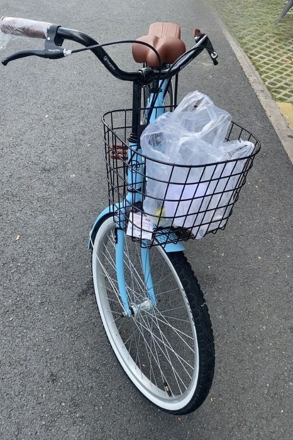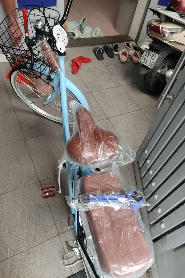 Xe đạp đi rất êm, giỏ rộng rãi và baga phía sau cực kỳ tiện lợi để mang thêm đồ. Tuy nhiên, mình gặp phải một vấn đề là chiếc xe có chút mùi khi mới nhận được, phải để ngoài trời vài ngày mới hết.