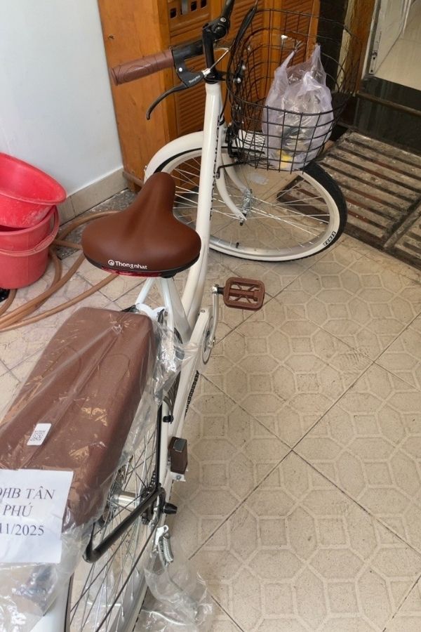 Xe đạp đi rất êm, giỏ rộng rãi và baga phía sau cực kỳ tiện lợi để mang thêm đồ. Tuy nhiên, mình gặp phải một vấn đề là chiếc xe có chút mùi khi mới nhận được, phải để ngoài trời vài ngày mới hết.
