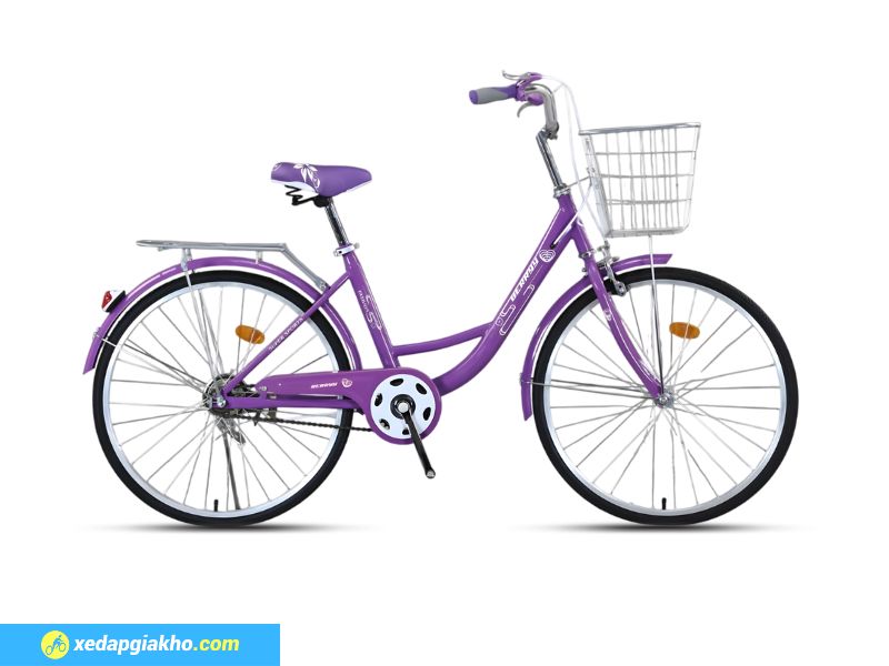 Bánh xe kích thước 24 inch, mang lại độ ổn định cao khi di chuyển trên nhiều loại mặt đường khác nhau. Kích thước bánh vừa phải giúp xe giữ thăng bằng tốt, đạp nhẹ và hạn chế rung lắc khi đi đường gồ ghề hoặc đường làng, ngõ nhỏ.