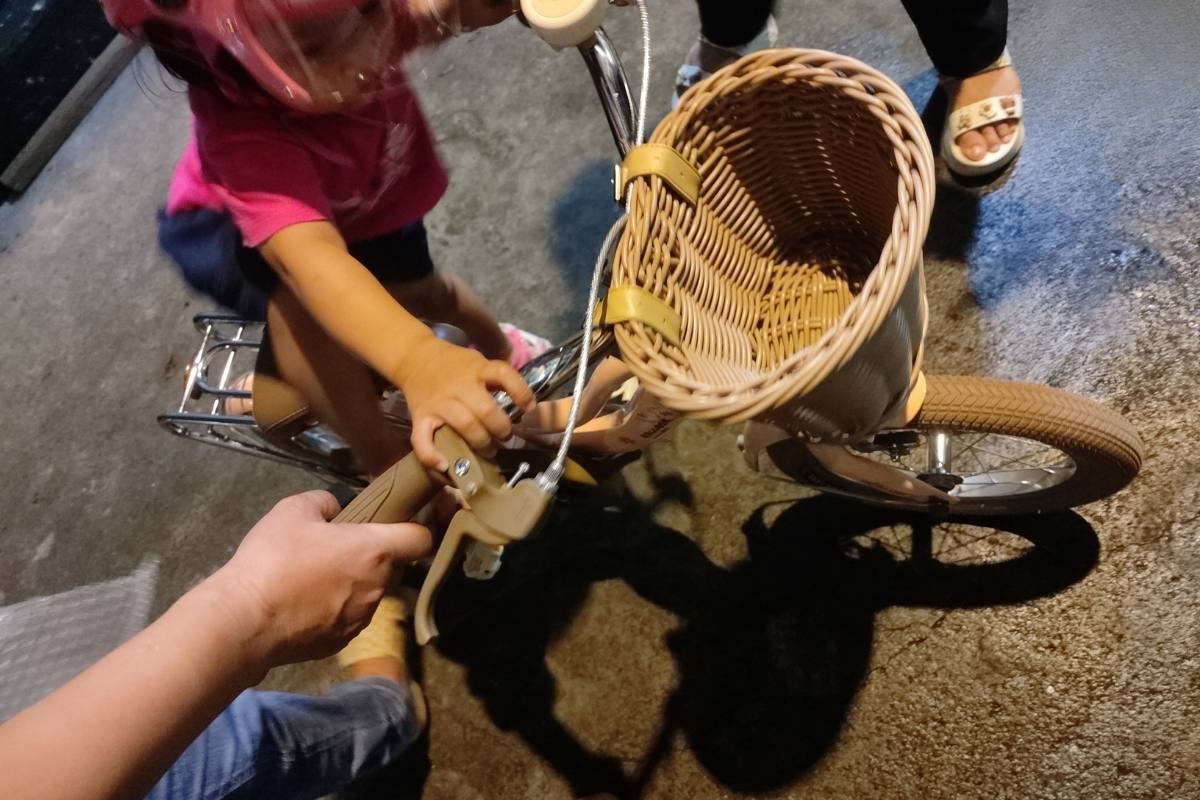 Xe hồng dễ thương cực kỳ, bé mới 4 tuổi mà đạp ngon lành. Giỏ mây nhìn xinh lắm, hàng giao nhanh và lắp sẵn luôn, chỉ hơi nặng chút xíu thôi.