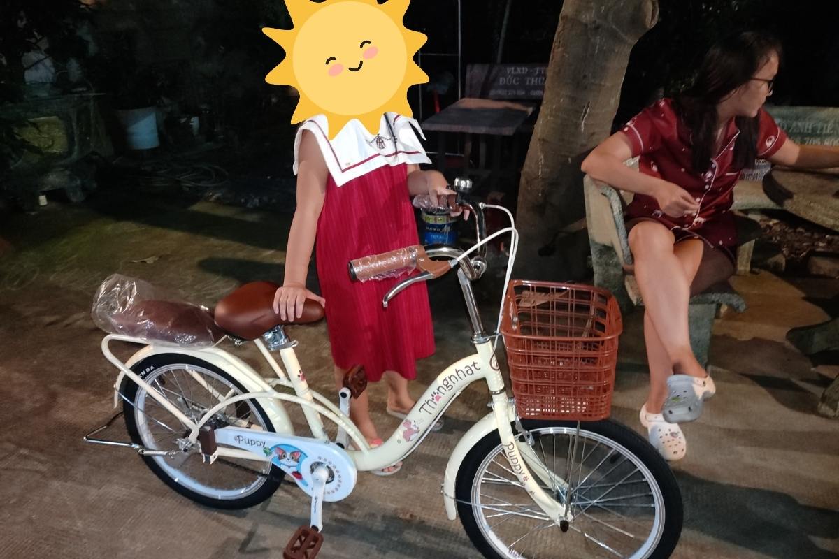 xe đạp Thống Nhất Puppy nhìn dễ thương, bé nhà mình thích lắm. Màu ngoài dạp hơn nhiều, mình mua thêm cho bé nón bảo hiểm cho an toàn