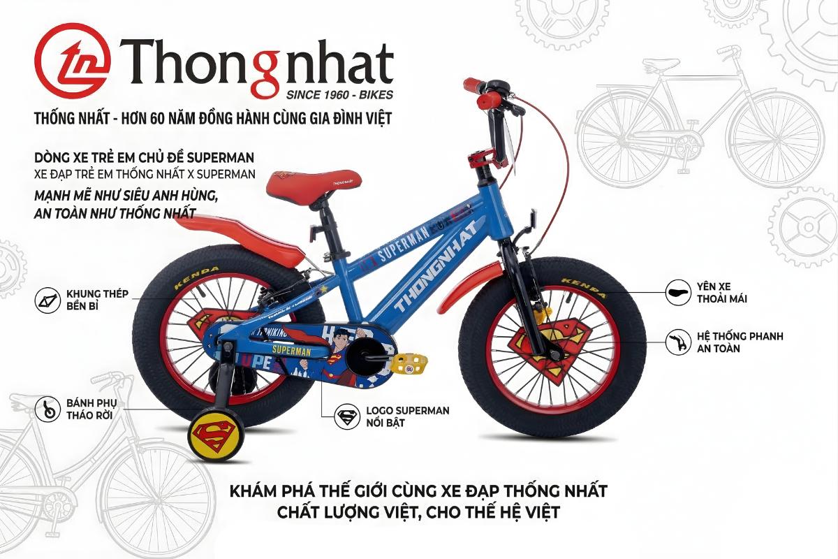 Đối với dòng xe đạp trẻ em, Thống Nhất vẫn giữ phong cách thiết kế chắc chắn, đơn giản và dễ sử dụng. Xe có khả năng chịu lực tốt, phù hợp với điều kiện đường xá tại Việt Nam. Nhờ độ bền và mức giá hợp lý, Thống Nhất là lựa chọn đáng tin cậy cho các gia đình muốn sử dụng lâu dài