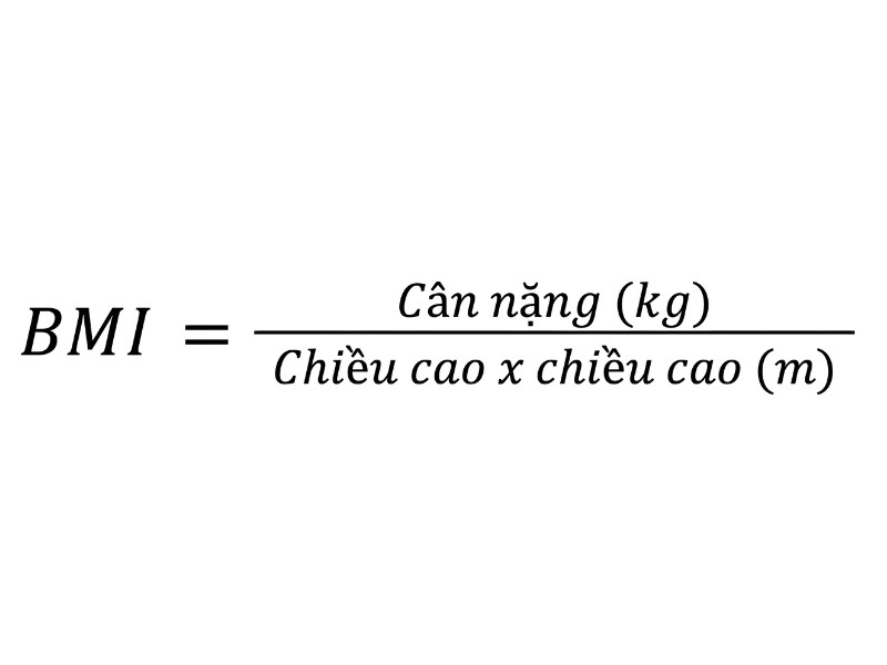BMI = Cân nặng (kg) / Chiều cao x chiều cao (m)